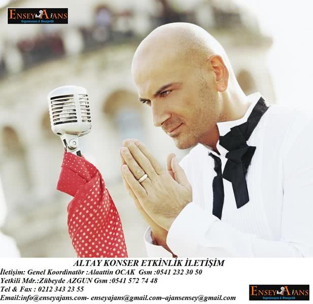 Altay konser, festival, düğün, bayi toplantısı organizasyonları için resmi yetkili menajeriyle Ensey Ajans Alaattin Ocak 05412323051 ile doğrudan iletişime geçiniz.